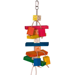 Birds Toys Wooden Blocks with Leather Strips