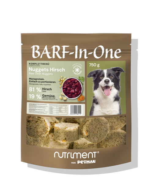 Composition:               Deer 81% (muscle meat, finely ground cartilage), potatoes, turnips (dried), peas, carrots, sunflower oil, salmon oil, minerals