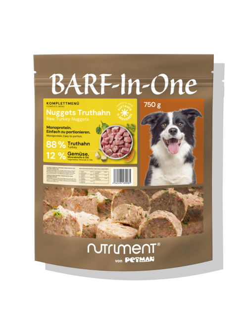 Turkey 87% (muscle meat, finely ground cartilage, skin, liver), beets (dried), spinach, peas, pumpkin, carrots, salmon oil, rapeseed oil, minerals (including premix)