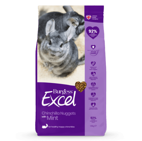 Our delicious, high fibre Chinchilla Nuggets with Mint supplement your chinchillas’ diet with vitamins and minerals and prevent selective feeding.