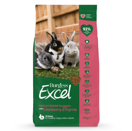 Our delicious, high fibre Mature Rabbit Nuggets with Cranberry & Thyme supplement your rabbits’ diet with vitamins and minerals and prevent selective feeding. Suitable for older rabbits aged 5 years+
