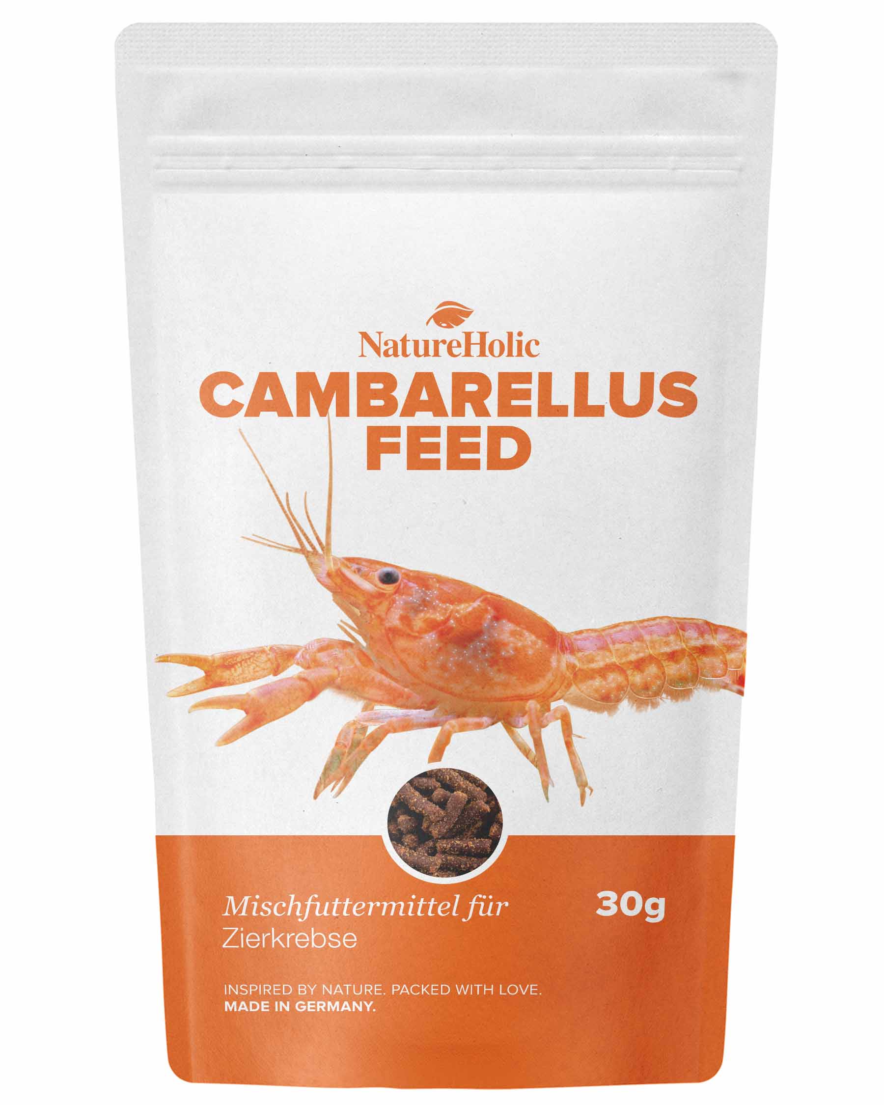 Dwarf crayfish in their natural habitat prefer a varied and diverse diet of animal and plant matter. Natureholic Cambarellusfeed CPO and dwarf crayfish food therefore contains high-quality ingredients in a balanced ratio that mirrors the natural diet of dwarf crayfish. This naturally promotes molting, growth, and reproduction in these little crustaceans. Thanks to its high protein content, Cambarellusfeed is suitable for all dwarf crayfish species, but especially for the popular CPO , Cambarellus patzcuarensis orange.