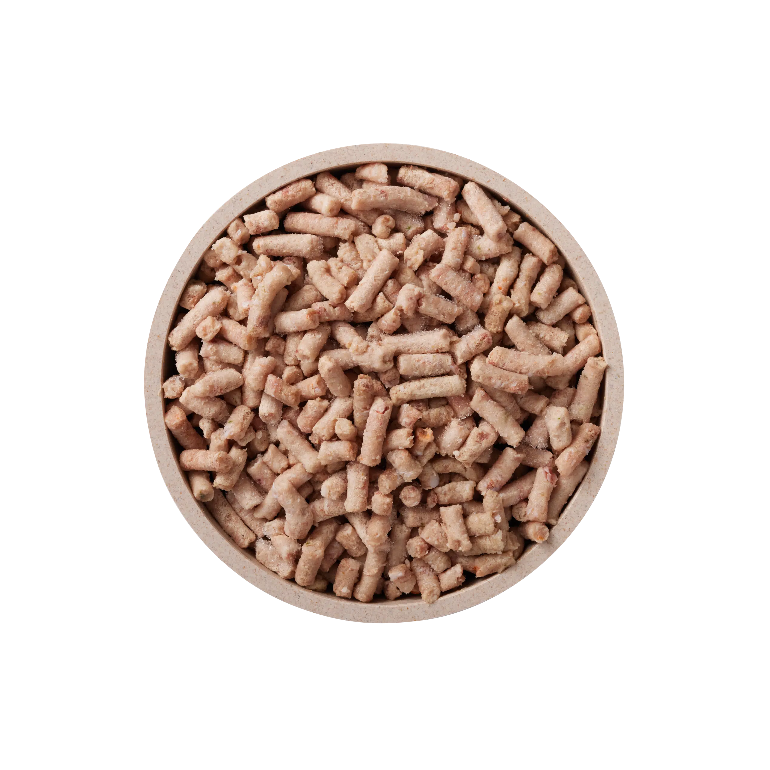 Fleshed chicken carcasses, chicken meat, vitamins and minerals, sunflower oil.