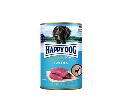 With Happy Dog Sensible Pure Sweden wet food your dog can enjoy the nature’s bounty in his bowl! This high-quality meat-based food is made from 100% valuable meat along with offal such as heart, lungs and liver. It also contains vital vitamins and minerals. The meat and offal come exclusively from regional game*. This wet food is produced without soya or other plant-based additives.
