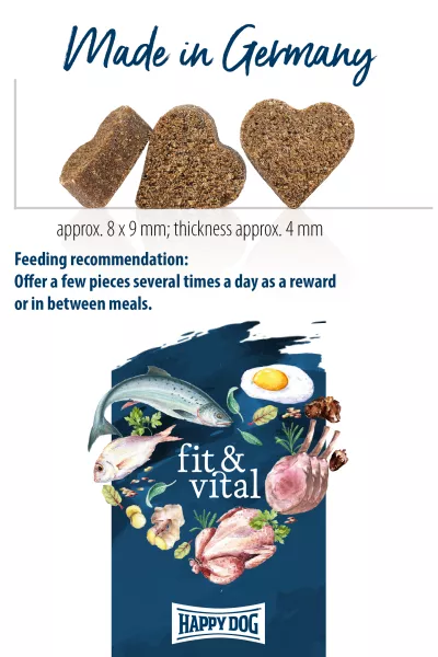 These treats are suitable for puppies from 6 weeks of age and for young dogs up to 18 months of age. Afterwards, when your four-legged friend is fully grown, you can treat him to our soft snacks for adult dogs or our meat snacks.