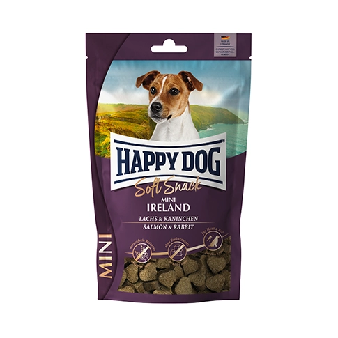 The soft heart-shaped Snack Ireland is ideal to treat your small four-legged friend or as a small meal for in between. Salmon and rabbit are extremely tasty and the many omega-3 and omega-6 fatty acids ensure a shiny coat. The wheat-free recipe is also ideal for sensitive and demanding dogs of small breeds. The snacks are made without added sugar and preservatives and have a practical reclosure for long-lasting freshness. Treat your dog with something special!