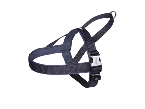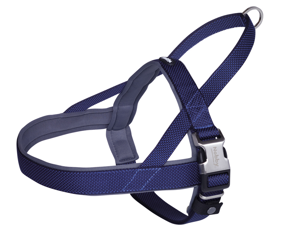 The series “Classic Preno Royal” is made of nylon neoprene and is padded with neoprene in the breast, neck and shoulder area. The hand strap allows a quick hold on the harness. The top part is made of metal and like the other metal parts matt silver. The collar is available in different sizes and colours.