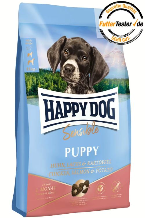 Why is Happy Dog puppy food with chicken and salmon ideal for your puppy?