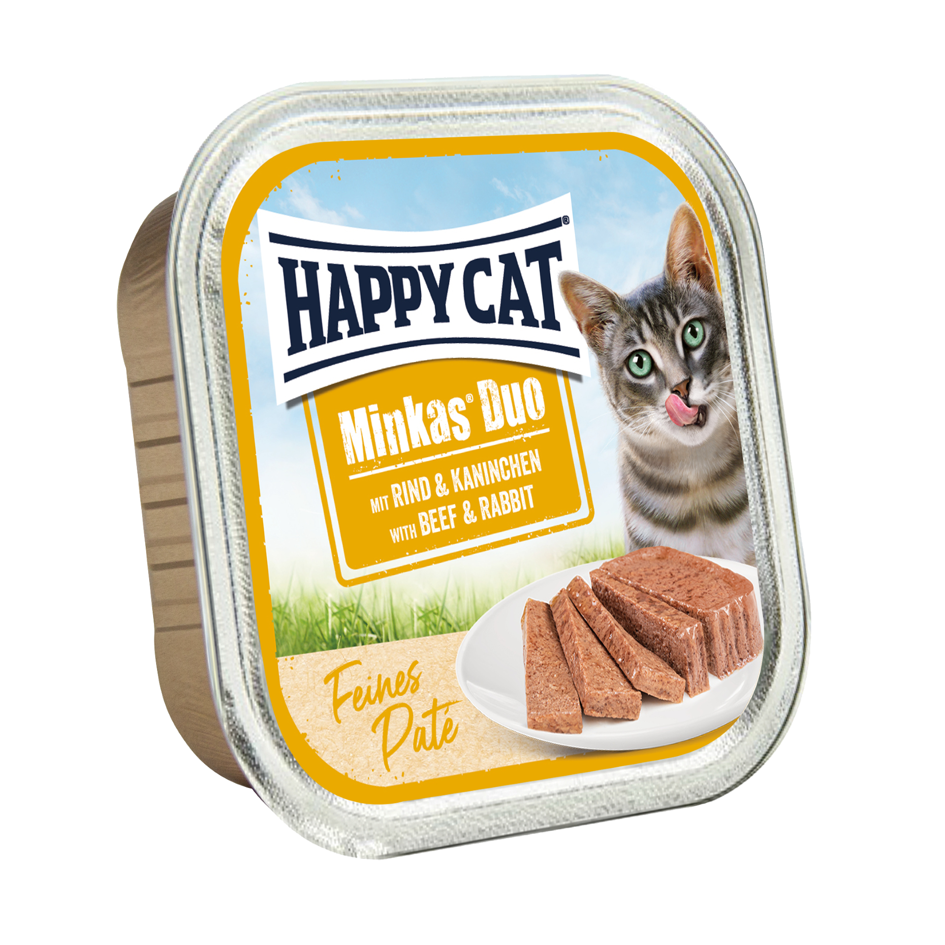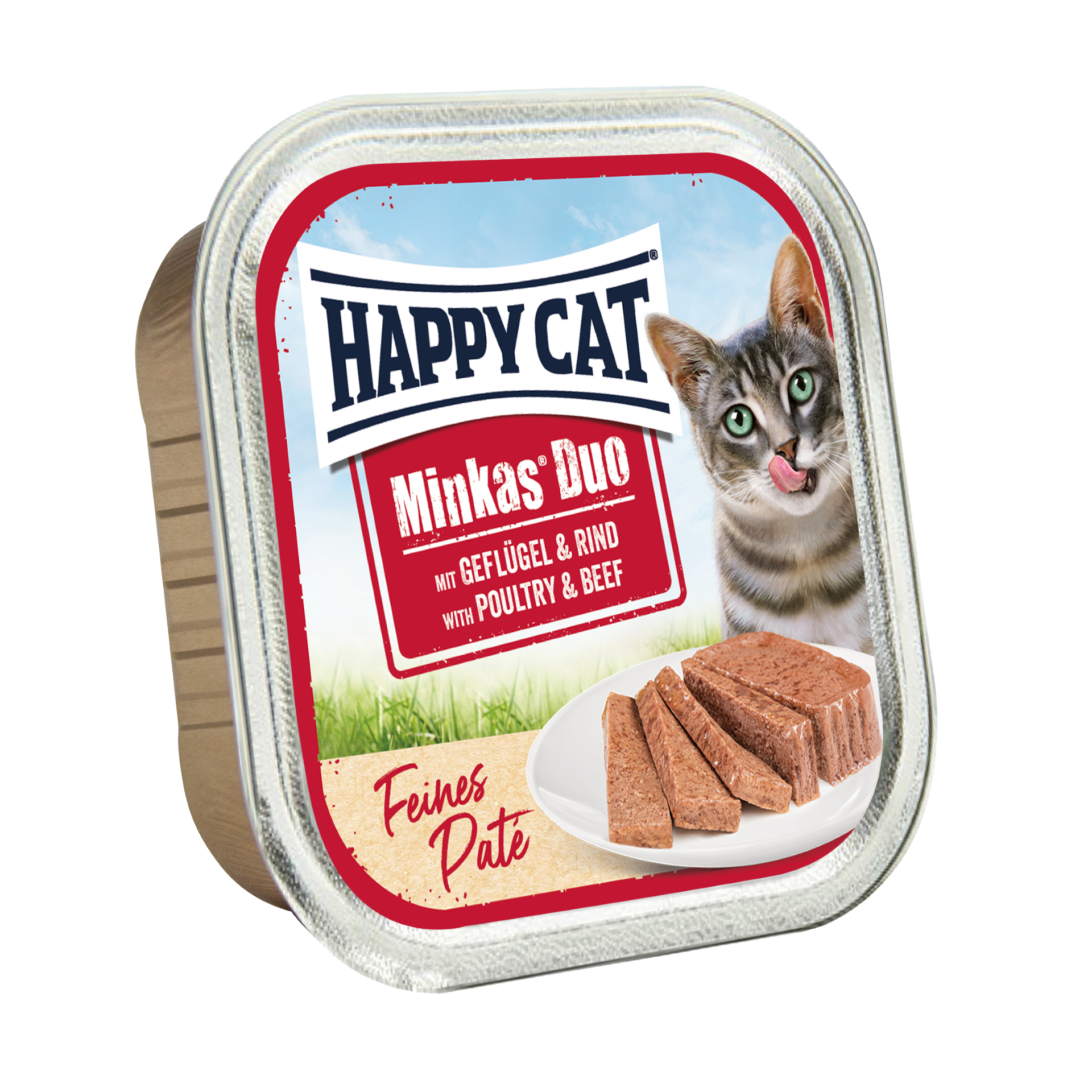 The balanced and varied Minkas Duo wet food bowls are available in five delicious varieties. In addition to poultry & beef, there are two other varieties with poultry, namely poultry & lamb and poultry & salmon. For all cats who don’t like or tolerate poultry, you can choose the beef & rabbit and beef & salmon varieties. Now test which of our five delicious wet foods your cat likes best.