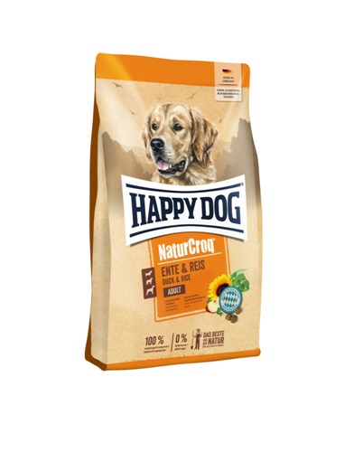 Your dog will love this well-balanced, species-appropriate complete food, with the finest ingredients from the Bavarian countryside. The crunchy kibbles contain high-quality ingredients such as delicious duck, well-tolerated rice and nutritious whole grains from the local region. Duck provides your dog with high-value animal protein, and gives them the energy they need to play and run around. Whole-grain products deliver important fibre. They help regulate the intestinal functions, satisfy the appetite, promote the digestion, and can also support intestinal health. They’re also an important source of B vitamins, minerals such as magnesium, iron, selenium and zinc, and are full of complex carbohydrates. This tasty, easily digestible formulation also contains valuable locally-grown herbs, which provide your four-legged friend with many important nutrients from a natural source.