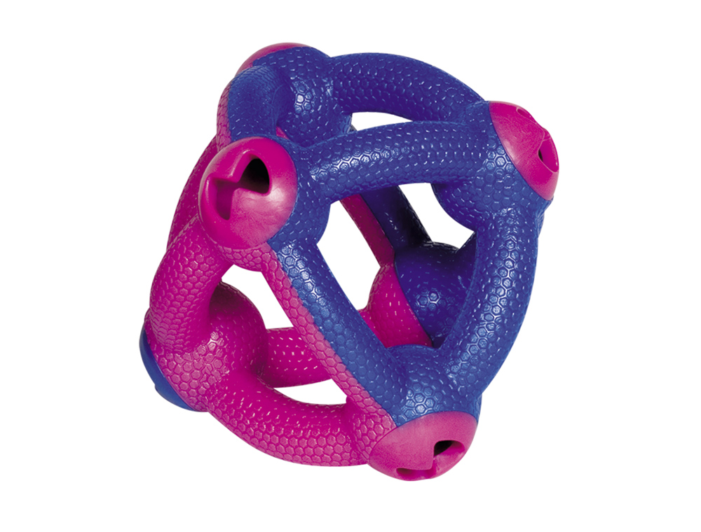 The particularly robust TPR toy “Satellite” serves as an employment ball for dogs and can be filled with dry snacks. It is equipped with 6 openings and is also suitable for large breeds. The toy is floatable and has a size of Ø17,0 cm.