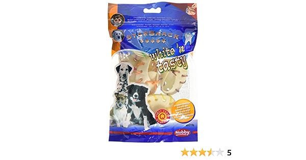 StarSnack White ‘n Tasty works like a natural toothbrush. Due to the friction during chewing and the substances that are released, the tartar is released and reduced. White ‘n Tasty Chewies are extremely low in calories as they are 100% rawhide. Thus, they are always a popular and healthy treat for your dog.