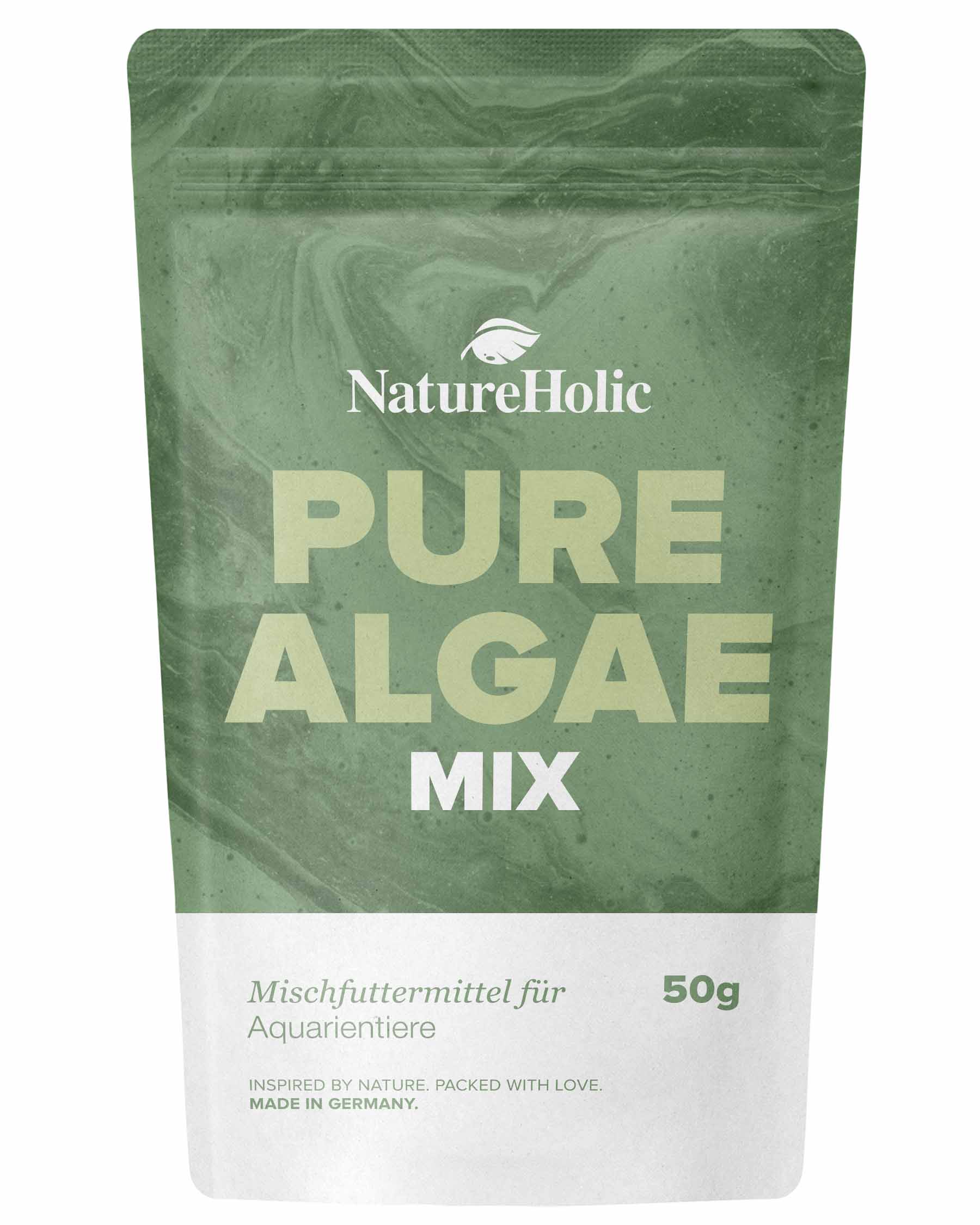 NatureHolic PureAlgae Mix, a high-quality algae powder made from spirulina , chlorella , Schizochytrium , and Ascophyllum , is a supplementary food for ornamental fish , shrimp, mussels, and snails . It consists of 100% natural algae . We’ve created a powerful mix from four different valuable algae, ideal for your filter-feeding and biofilm-eating fish, shrimp, snails, crayfish, crabs, and mussels in the aquarium. NatureHolic PureAlgae Mix is also perfect as a rearing food for algae-eating fry , especially juvenile shrimp , for breeding filter-feeding live foods from brine shrimp to daphnia, and for supplementing the diet of your corals in saltwater aquariums . Furthermore, our NatureHolic PureAlgae Mix is a valuable ingredient for anyone who wants to make their own food sticks or flakes for their aquarium animals.