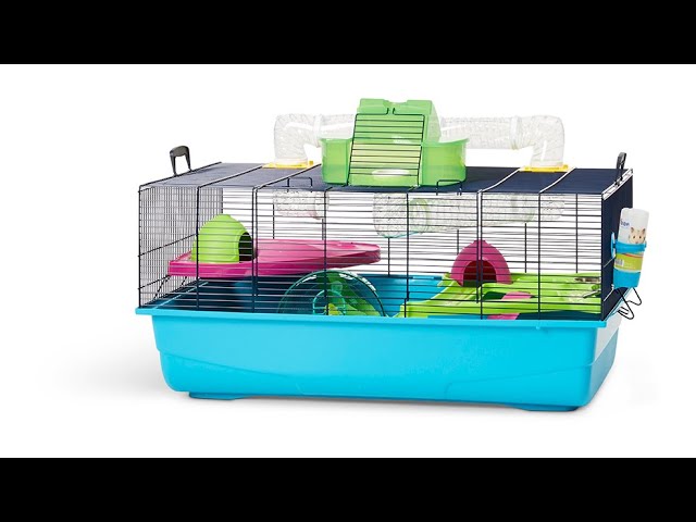 The Sky Metro hamster cage comes with an extensive tunnel system for your hamster to scramble through. Moreover, the cage comes with a colourful raised platform, a house, ladder, feeding bowl and a running wheel. You can suspend the Sputnik hamster house from the ceiling of the cage. Doing so stimulates your hamster’s urge to climb, whilst giving him a wonderful place to relax and sleep. The drinking bottle easily latches onto the cage’s wire mesh.