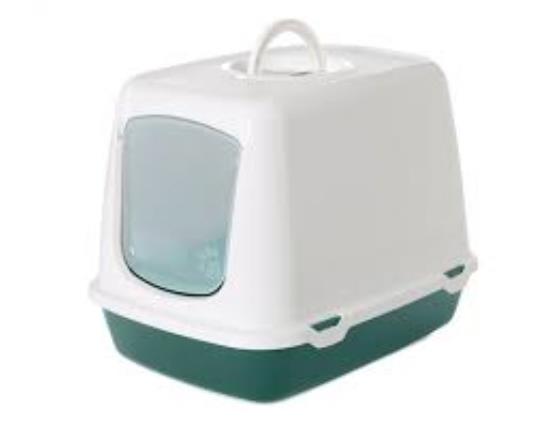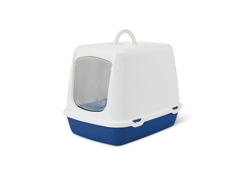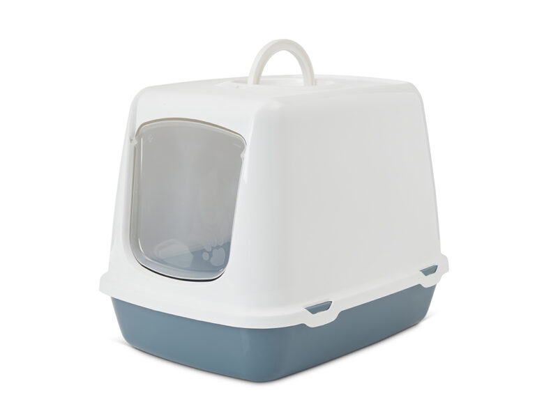 Oscar isa traditional hooded cat toilet with plastic swing door and replaceable filter to get rid of any nasty odours.