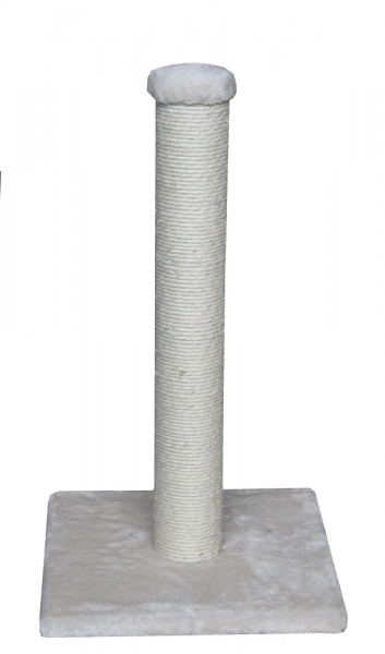 The scratching tree “BARI” has a base size of 35 x 35 cm and is 64 cm high. It is equipped with Ø 9 cm sisal trunks. This design is provided with grey plush.