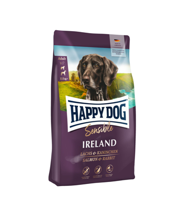 Is your dog choosy and you want to offer it the best food? Then pamper your doggy gourmet with a choice formulation of nutritious salmon, tasty rabbit and valuable grain. Salmon is rich in essential Omega-3 and Omega-6 fatty acids, while rabbit delivers valuable organic protein and other important nutrients. Whole grains provide your dog with vital fibre and roughage to help regulate digestion. Based on the unique Happy Dog Natural Life Concept®, the New Zealand mussels support the joints and valuable Omega-3 and Omega-6 fatty acids make sure of healthy skin and a glossy coat.